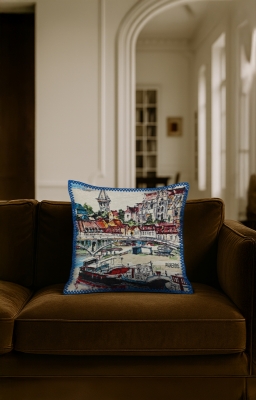 Dünya Şehirleri Goblen, renkli çözgü ve atkı ipliklerinin yüzyıllardır kullanılan geleneksel dokuma teknikleriyle modern makinelerde işlenmesiyle üretilen özel bir kumaş türüdür. Bu ürün, goblen dokuma ile üretilmiş dekoratif bir yastıktır. Bu koleksiyonda, dünyanın dört bir yanındaki ikonik şehir manzaraları işlenmiştir.İlgili Ürünler