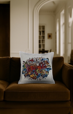 Dünya Şehirleri Goblen, renkli çözgü ve atkı ipliklerinin yüzyıllardır kullanılan geleneksel dokuma teknikleriyle modern makinelerde işlenmesiyle üretilen özel bir kumaş türüdür. Bu ürün, goblen dokuma ile üretilmiş dekoratif bir yastıktır. Bu koleksiyonda, dünyanın dört bir yanındaki ikonik şehir manzaraları işlenmiştir.