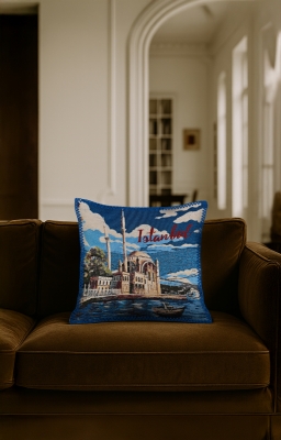 Dünya Şehirleri Goblen, renkli çözgü ve atkı ipliklerinin yüzyıllardır kullanılan geleneksel dokuma teknikleriyle modern makinelerde işlenmesiyle üretilen özel bir kumaş türüdür. Bu ürün, goblen dokuma ile üretilmiş dekoratif bir yastıktır. Bu koleksiyonda, dünyanın dört bir yanındaki ikonik şehir manzaraları işlenmiştir.