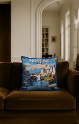 Dünya Şehirleri Goblen, renkli çözgü ve atkı ipliklerinin yüzyıllardır kullanılan geleneksel dokuma teknikleriyle modern makinelerde işlenmesiyle üretilen özel bir kumaş türüdür. Bu ürün, goblen dokuma ile üretilmiş dekoratif bir yastıktır. Bu koleksiyonda, dünyanın dört bir yanındaki ikonik şehir manzaraları işlenmiştir.