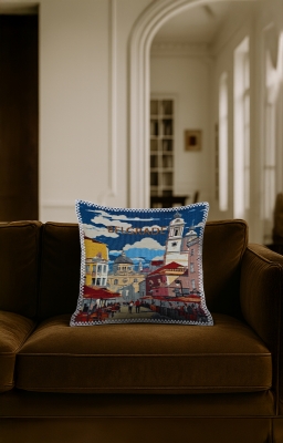 Dünya Şehirleri Goblen, renkli çözgü ve atkı ipliklerinin yüzyıllardır kullanılan geleneksel dokuma teknikleriyle modern makinelerde işlenmesiyle üretilen özel bir kumaş türüdür. Bu ürün, goblen dokuma ile üretilmiş dekoratif bir yastıktır. Bu koleksiyonda, dünyanın dört bir yanındaki ikonik şehir manzaraları işlenmiştir.İlgili Ürünler