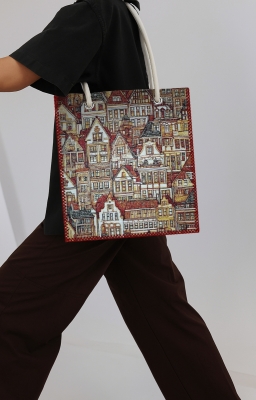 Dünya Şehirleri Goblen, renkli çözgü ve atkı ipliklerinin yüzyıllardır kullanılan geleneksel dokuma teknikleriyle modern makinelerde işlenmesiyle üretilen özel bir kumaş türüdür. Bu ürün, goblen dokuma ile üretilmiş şık bir heybedir. Bu koleksiyonda, dünyanın dört bir yanındaki ikonik şehir manzaraları işlenmiştir.