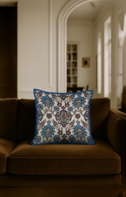 Etnik Eserler Goblen, renkli çözgü ve atkı ipliklerinin yüzyıllardır kullanılan geleneksel dokuma teknikleriyle modern makinelerde işlenmesiyle üretilen özel bir kumaş türüdür. Bu ürün, goblen dokuma ile üretilmiş dekoratif bir yastıktır. Bu koleksiyonda, farklı kültürlerden ve etnik motiflerden ilham alan tasarımlar yer almaktadır.