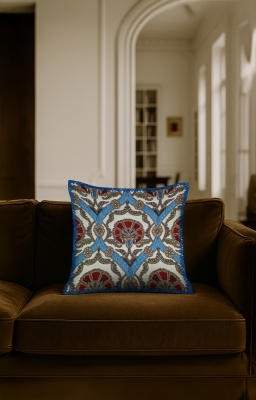 Etnik Eserler Goblen, renkli çözgü ve atkı ipliklerinin yüzyıllardır kullanılan geleneksel dokuma teknikleriyle modern makinelerde işlenmesiyle üretilen özel bir kumaş türüdür. Bu ürün, goblen dokuma ile üretilmiş dekoratif bir yastıktır. Bu koleksiyonda, farklı kültürlerden ve etnik motiflerden ilham alan tasarımlar yer almaktadır.