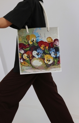Floral Goblen, renkli çözgü ve atkı ipliklerinin yüzyıllardır kullanılan geleneksel dokuma teknikleriyle modern makinelerde işlenmesiyle üretilen özel bir kumaş türüdür. Bu ürün, goblen dokuma ile üretilmiş zarif bir heybe çantadır. Bu koleksiyonda, farklı çiçek ve floral motiflerden ilham alan tasarımlar yer almaktadır.İlgili Ürünler