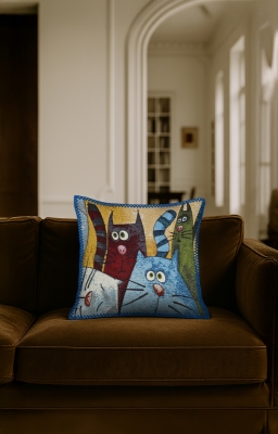 Hayvanlar Goblen, renkli çözgü ve atkı ipliklerinin yüzyıllardır kullanılan geleneksel dokuma teknikleriyle modern makinelerde işlenmesiyle üretilen özel bir kumaş türüdür. Bu ürün, goblen dokuma ile üretilmiş dekoratif bir yastıktır. Bu koleksiyonda, doğadan ilham alan çeşitli hayvan figürleri özenle işlenmiştir.İlgili Ürünler