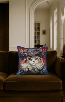 Hayvanlar Goblen, renkli çözgü ve atkı ipliklerinin yüzyıllardır kullanılan geleneksel dokuma teknikleriyle modern makinelerde işlenmesiyle üretilen özel bir kumaş türüdür. Bu ürün, goblen dokuma ile üretilmiş dekoratif bir yastıktır. Bu koleksiyonda, doğadan ilham alan çeşitli hayvan figürleri özenle işlenmiştir.