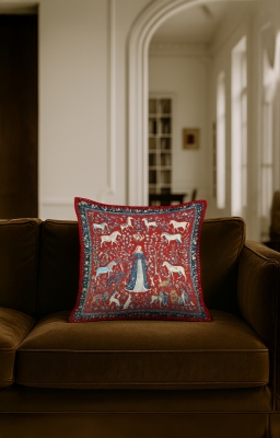 Klasik Eserler Goblen, renkli çözgü ve atkı ipliklerinin yüzyıllardır kullanılan geleneksel dokuma teknikleriyle modern makinelerde işlenmesiyle üretilen özel bir kumaş türüdür. Bu ürün, goblen dokuma ile üretilmiş zarif bir heybe çantadır. Bu koleksiyonda, farklı klasik eserler ve klasik zamanlardan ilham alan tasarımlar yer almaktadır.İlgili Ürünler