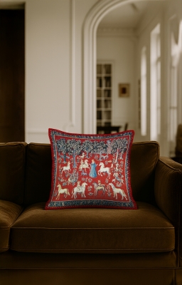 Klasik Eserler Goblen, renkli çözgü ve atkı ipliklerinin yüzyıllardır kullanılan geleneksel dokuma teknikleriyle modern makinelerde işlenmesiyle üretilen özel bir kumaş türüdür. Bu ürün, goblen dokuma ile üretilmiş zarif bir heybe çantadır. Bu koleksiyonda, farklı klasik eserler ve klasik zamanlardan ilham alan tasarımlar yer almaktadır.