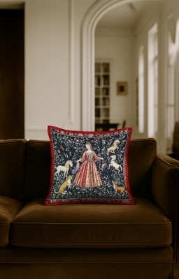 Klasik Eserler Goblen, renkli çözgü ve atkı ipliklerinin yüzyıllardır kullanılan geleneksel dokuma teknikleriyle modern makinelerde işlenmesiyle üretilen özel bir kumaş türüdür. Bu ürün, goblen dokuma ile üretilmiş zarif bir heybe çantadır. Bu koleksiyonda, farklı klasik eserler ve klasik zamanlardan ilham alan tasarımlar yer almaktadır.İlgili Ürünler