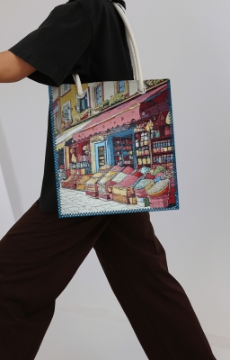 Manzara Goblen, renkli çözgü ve atkı ipliklerinin yüzyıllardır kullanılan geleneksel dokuma teknikleriyle modern makinelerde işlenmesiyle üretilen özel bir kumaş türüdür. Bu ürün, goblen dokuma ile üretilmiş şık bir heybedir. Bu koleksiyonda, doğa ve şehir manzaraları sanatsal bir yorumla kumaşa yansıtılmıştır.İlgili Ürünler