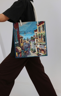 Manzara Goblen, renkli çözgü ve atkı ipliklerinin yüzyıllardır kullanılan geleneksel dokuma teknikleriyle modern makinelerde işlenmesiyle üretilen özel bir kumaş türüdür. Bu ürün, goblen dokuma ile üretilmiş şık bir heybedir. Bu koleksiyonda, doğa ve şehir manzaraları sanatsal bir yorumla kumaşa yansıtılmıştır.İlgili Ürünler