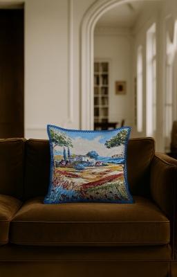 Manzara Goblen, renkli çözgü ve atkı ipliklerinin yüzyıllardır kullanılan geleneksel dokuma teknikleriyle modern makinelerde işlenmesiyle üretilen özel bir kumaş türüdür. Bu ürün, goblen dokuma ile üretilmiş dekoratif bir yastıktır. Bu koleksiyonda, doğa ve şehir manzaraları sanatsal bir yorumla kumaşa yansıtılmıştır.İlgili Ürünler