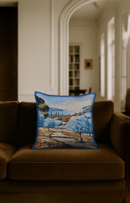Manzara Goblen, renkli çözgü ve atkı ipliklerinin yüzyıllardır kullanılan geleneksel dokuma teknikleriyle modern makinelerde işlenmesiyle üretilen özel bir kumaş türüdür. Bu ürün, goblen dokuma ile üretilmiş dekoratif bir yastıktır. Bu koleksiyonda, doğa ve şehir manzaraları sanatsal bir yorumla kumaşa yansıtılmıştır.İlgili Ürünler