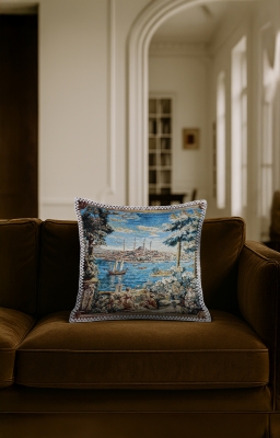Manzara Goblen, renkli çözgü ve atkı ipliklerinin yüzyıllardır kullanılan geleneksel dokuma teknikleriyle modern makinelerde işlenmesiyle üretilen özel bir kumaş türüdür. Bu ürün, goblen dokuma ile üretilmiş dekoratif bir yastıktır. Bu koleksiyonda, doğa ve şehir manzaraları sanatsal bir yorumla kumaşa yansıtılmıştır.İlgili Ürünler