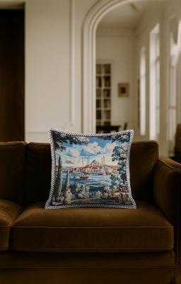 Manzara Goblen, renkli çözgü ve atkı ipliklerinin yüzyıllardır kullanılan geleneksel dokuma teknikleriyle modern makinelerde işlenmesiyle üretilen özel bir kumaş türüdür. Bu ürün, goblen dokuma ile üretilmiş dekoratif bir yastıktır. Bu koleksiyonda, doğa ve şehir manzaraları sanatsal bir yorumla kumaşa yansıtılmıştır.İlgili Ürünler