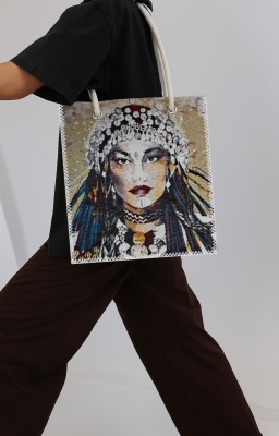Portre Goblen, renkli çözgü ve atkı ipliklerinin yüzyıllardır kullanılan geleneksel dokuma teknikleriyle modern makinelerde işlenmesiyle üretilen özel bir kumaş türüdür. Bu ürün, goblen dokuma ile üretilmiş zarif bir heybe çantadır. Bu koleksiyonda, farklı kültürlerden insan portrelerinden ilham alan tasarımlar yer almaktadır.İlgili Ürünler