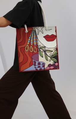 Portre Goblen, renkli çözgü ve atkı ipliklerinin yüzyıllardır kullanılan geleneksel dokuma teknikleriyle modern makinelerde işlenmesiyle üretilen özel bir kumaş türüdür. Bu ürün, goblen dokuma ile üretilmiş zarif bir heybe çantadır. Bu koleksiyonda, farklı kültürlerden insan portrelerinden ilham alan tasarımlar yer almaktadır.İlgili Ürünler