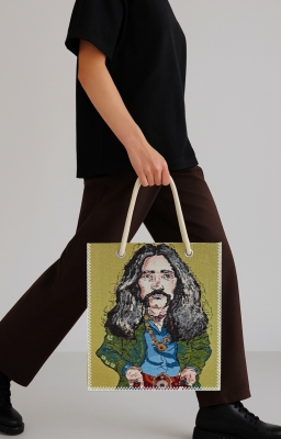 Ünlüler Goblen, renkli çözgü ve atkı ipliklerinin yüzyıllardır kullanılan geleneksel dokuma teknikleriyle modern makinelerde işlenmesiyle üretilen özel bir kumaş türüdür. Bu ürün, goblen dokuma ile üretilmiş şık bir heybedir. Bu koleksiyonda, dünya çapında tanınmış ünlü isimlerin portreleri yer almaktadır.