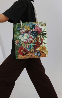 Ünlü Sanatçıların Eserleri Goblen, renkli çözgü ve atkı ipliklerinin yüzyıllardır kullanılan geleneksel dokuma teknikleriyle modern makinelerde işlenmesiyle üretilen özel bir kumaş türüdür. Bu ürün, goblen dokuma ile üretilmiş şık bir heybedir. Bu koleksiyonda, ünlü sanatçıların ölümsüz eserleri kumaş üzerinde yeniden hayat bulmuştur.İlgili Ürünler