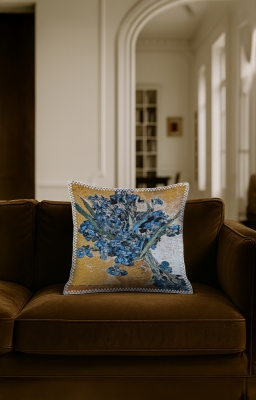 Ünlü Sanatçıların Eserleri Goblen, renkli çözgü ve atkı ipliklerinin yüzyıllardır kullanılan geleneksel dokuma teknikleriyle modern makinelerde işlenmesiyle üretilen özel bir kumaş türüdür. Bu ürün, goblen dokuma ile üretilmiş dekoratif bir yastıktır. Bu koleksiyonda, ünlü sanatçıların ölümsüz eserleri kumaş üzerinde yeniden hayat bulmuştur.