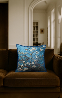 Ünlü Sanatçıların Eserleri Goblen, renkli çözgü ve atkı ipliklerinin yüzyıllardır kullanılan geleneksel dokuma teknikleriyle modern makinelerde işlenmesiyle üretilen özel bir kumaş türüdür. Bu ürün, goblen dokuma ile üretilmiş dekoratif bir yastıktır. Bu koleksiyonda, ünlü sanatçıların ölümsüz eserleri kumaş üzerinde yeniden hayat bulmuştur.İlgili Ürünler