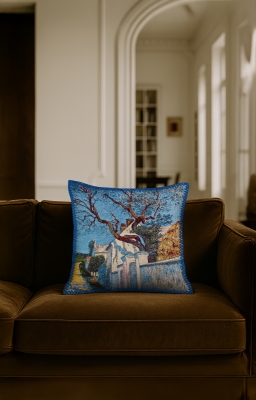 Ünlü Sanatçıların Eserleri Goblen, renkli çözgü ve atkı ipliklerinin yüzyıllardır kullanılan geleneksel dokuma teknikleriyle modern makinelerde işlenmesiyle üretilen özel bir kumaş türüdür. Bu ürün, goblen dokuma ile üretilmiş dekoratif bir yastıktır. Bu koleksiyonda, ünlü sanatçıların ölümsüz eserleri kumaş üzerinde yeniden hayat bulmuştur.İlgili Ürünler