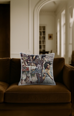 Ünlü Sanatçıların Eserleri Goblen, renkli çözgü ve atkı ipliklerinin yüzyıllardır kullanılan geleneksel dokuma teknikleriyle modern makinelerde işlenmesiyle üretilen özel bir kumaş türüdür. Bu ürün, goblen dokuma ile üretilmiş dekoratif bir yastıktır. Bu koleksiyonda, ünlü sanatçıların ölümsüz eserleri kumaş üzerinde yeniden hayat bulmuştur.İlgili Ürünler