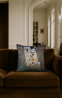 Ünlü Sanatçıların Eserleri Goblen, renkli çözgü ve atkı ipliklerinin yüzyıllardır kullanılan geleneksel dokuma teknikleriyle modern makinelerde işlenmesiyle üretilen özel bir kumaş türüdür. Bu ürün, goblen dokuma ile üretilmiş dekoratif bir yastıktır. Bu koleksiyonda, ünlü sanatçıların ölümsüz eserleri kumaş üzerinde yeniden hayat bulmuştur.İlgili Ürünler