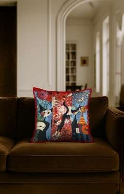 Ünlü Sanatçıların Eserleri Goblen, renkli çözgü ve atkı ipliklerinin yüzyıllardır kullanılan geleneksel dokuma teknikleriyle modern makinelerde işlenmesiyle üretilen özel bir kumaş türüdür. Bu ürün, goblen dokuma ile üretilmiş dekoratif bir yastıktır. Bu koleksiyonda, ünlü sanatçıların ölümsüz eserleri kumaş üzerinde yeniden hayat bulmuştur.İlgili Ürünler