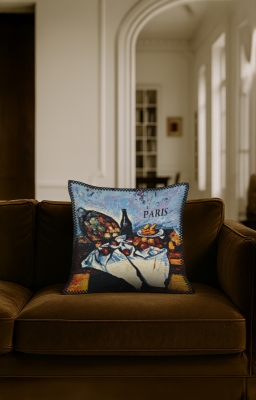Ünlü Sanatçıların Eserleri Goblen, renkli çözgü ve atkı ipliklerinin yüzyıllardır kullanılan geleneksel dokuma teknikleriyle modern makinelerde işlenmesiyle üretilen özel bir kumaş türüdür. Bu ürün, goblen dokuma ile üretilmiş dekoratif bir yastıktır. Bu koleksiyonda, ünlü sanatçıların ölümsüz eserleri kumaş üzerinde yeniden hayat bulmuştur.İlgili Ürünler