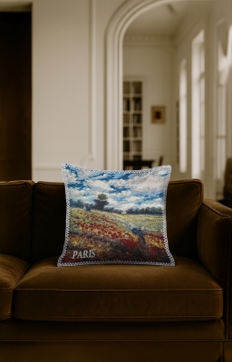 Ünlü Sanatçıların Eserleri Goblen, renkli çözgü ve atkı ipliklerinin yüzyıllardır kullanılan geleneksel dokuma teknikleriyle modern makinelerde işlenmesiyle üretilen özel bir kumaş türüdür. Bu ürün, goblen dokuma ile üretilmiş dekoratif bir yastıktır. Bu koleksiyonda, ünlü sanatçıların ölümsüz eserleri kumaş üzerinde yeniden hayat bulmuştur.İlgili Ürünler