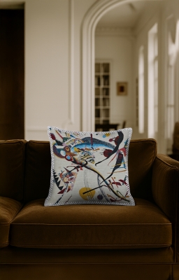 Ünlü Sanatçıların Eserleri Goblen, renkli çözgü ve atkı ipliklerinin yüzyıllardır kullanılan geleneksel dokuma teknikleriyle modern makinelerde işlenmesiyle üretilen özel bir kumaş türüdür. Bu ürün, goblen dokuma ile üretilmiş dekoratif bir yastıktır. Bu koleksiyonda, ünlü sanatçıların ölümsüz eserleri kumaş üzerinde yeniden hayat bulmuştur.İlgili Ürünler