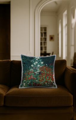 Ünlü Sanatçıların Eserleri Goblen, renkli çözgü ve atkı ipliklerinin yüzyıllardır kullanılan geleneksel dokuma teknikleriyle modern makinelerde işlenmesiyle üretilen özel bir kumaş türüdür. Bu ürün, goblen dokuma ile üretilmiş dekoratif bir yastıktır. Bu koleksiyonda, ünlü sanatçıların ölümsüz eserleri kumaş üzerinde yeniden hayat bulmuştur.İlgili Ürünler