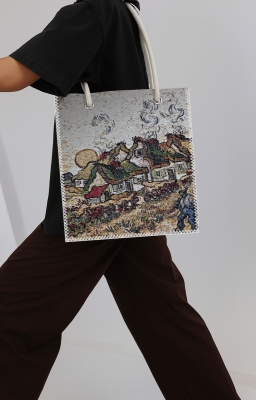 Ünlü Sanatçıların Eserleri Goblen, renkli çözgü ve atkı ipliklerinin yüzyıllardır kullanılan geleneksel dokuma teknikleriyle modern makinelerde işlenmesiyle üretilen özel bir kumaş türüdür. Bu ürün, goblen dokuma ile üretilmiş şık bir heybedir. Bu koleksiyonda, ünlü sanatçıların ölümsüz eserleri kumaş üzerinde yeniden hayat bulmuştur.İlgili Ürünler