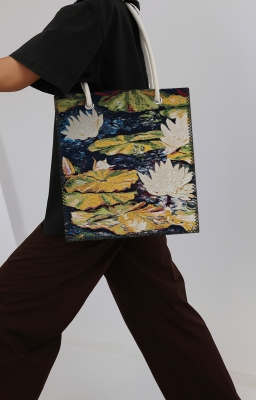 Ünlü Sanatçıların Eserleri Goblen, renkli çözgü ve atkı ipliklerinin yüzyıllardır kullanılan geleneksel dokuma teknikleriyle modern makinelerde işlenmesiyle üretilen özel bir kumaş türüdür. Bu ürün, goblen dokuma ile üretilmiş şık bir heybedir. Bu koleksiyonda, ünlü sanatçıların ölümsüz eserleri kumaş üzerinde yeniden hayat bulmuştur.İlgili Ürünler