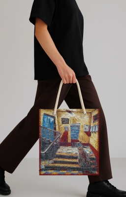 Ünlü Sanatçıların Eserleri Goblen, renkli çözgü ve atkı ipliklerinin yüzyıllardır kullanılan geleneksel dokuma teknikleriyle modern makinelerde işlenmesiyle üretilen özel bir kumaş türüdür. Bu ürün, goblen dokuma ile üretilmiş şık bir heybedir. Bu koleksiyonda, ünlü sanatçıların ölümsüz eserleri kumaş üzerinde yeniden hayat bulmuştur.İlgili Ürünler
